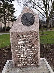 Antoine Bénézet, ou Anthony Benezet en anglais, né dans le Royaume de France le à Saint-Quentin dans l'actuel département de l'Aisne et mort le à Philadelphie dans l'actuel État de la Pennsylvanie, est un enseignant, pédagogue, philanthrope et abolitionniste naturalisé britannique puis américain, figure majeure des quakers, et du mouvement abolitionniste aux États-Unis, il est à l'initiative de la création de la première société abolitionniste du monde la Society for Promoting the Abolition of Slavery, and for the Relief of Free Negroes en 1775 qui devient la Pennsylvania Abolition Society en 1784.