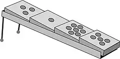 4 carrés avec des trous des deux côtés, 1 rampe, 10 billes blanches, 10 billes noires.