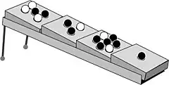 Un joueur joue avec des billes blanches, l’autre avec des billes noires. Le but est d'avoir plus de billes que son adversaire sur le plus haut carré de la rampe, à la fin de la partie.