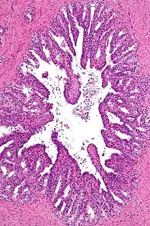 - le cancer de la prostate est un cancer fréquent touchant la prostate, une glande de l'appareil reproducteur de l'homme. Le cancer se développe à partir des tissus de la prostate quand des cellules y mutent et se multiplient de façon incontrôlée. Celles-ci peuvent ensuite s'étendre (se métastaser) en migrant de la prostate jusqu'à d'autres parties du corps, particulièrement les os et les ganglions lymphatiques du pelvis. Le cancer de la prostate survient indépendamment de l'hypertrophie bénigne de la prostate (HBP), ou adénome prostatique.