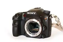 Appareil numérique à grand capteur, visée optique (reflex) et objectif interchangeable. Les appareils reflex numériques allient les propriétés des appareils reflex classiques (interchangeabilité des objectifs) et de la technologie numérique qui capte la lumière sur un support de type électronique. La visée s'effectue par l'objectif grâce à un prisme et un miroir.