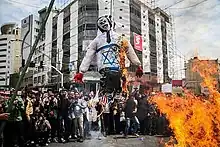 Pendant la Journée Al-Quds qui a eu lieu annuellement en Iran et d'autres pays ; de vastes rassemblements et marches se sont tenus, au cours desquels de hauts dirigeants ont effectué des discours qui se traduisent souvent par des chants de « Mort à Israël, Mort à l'Amérique »[36],[37]. Les drapeaux Israéliens, qu’ils soient peints au sol ou distribués pour que les gens puissent marcher dessus, sont à la fois piétinés et brûlés. De plus, des expositions montrant des maquettes de missiles balistiques présentent des slogans tels que « Mort à Israël »[36],[37].