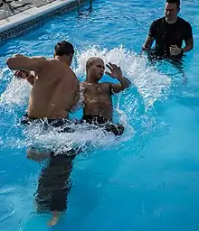 Entrainement au sauvetage maritime par l'US Navy avec un scénario implicant une victime paniquée ou combattante | |