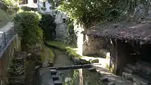 Le trajet du ruisseau est dérivé au Moyen Âge pour alimenter le château en eau ; à la sortie du souterrain il se jette dans un lavoir, puis continue sa descente dans un ruisseau en partie non-canalisé.