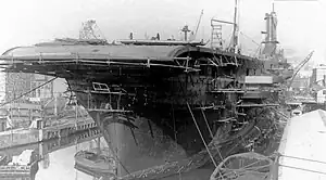 L'Aquila lors de sa transformation en porte-avions, en 1943. | |