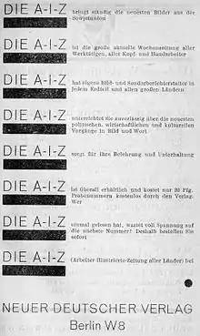 L'Arbeiter Illustrierte Zeitung, souvent abrégé en AIZ (le « Journal illustré des travailleurs »), est un magazine hebdomadaire illustré allemand publié entre 1921 et 1938 à Berlin et de 1933 à 1938 en exil à Prague. Son fondateur est Willi Münzenberg.