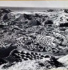 Dans une seconde phase, la saumure obtenue était mise à évaporer dans des fourneaux en terre de type à piliers, dont la structure évoque celles des fourneaux protohistoriques d'Europe[1]. Hauts d'environ 80 cm, ces fourneaux de forme oblongue, construits au-dessus du sol, atteignaient une longueur d'environ 5 m pour une largeur de 3 m environ. Ils recevaient chacun une série de 50 à 100 récipients à saumure de forme tronconique à cylindrique, fixés au-dessus d'un grand piédestal en terre cuite, fiché verticalement dans le sol. La combustion était alimentée par une série d'ouvertures latérales pratiquées à la base des parois du fourneau. Le dessus du fourneau était fermé par une sole horizontale, percée de jours circulaires dans lesquels venait s'encastrer la partie supérieure des récipients à saumure. Les fourneaux étaient détruits à chaque opération et devaient sans cesse être reconstruits.