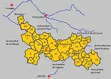 À l'origine, cet archiprêtré englobait tout le territoire au sud de Limoges. De Limoges, on rejoignait le trajet antique nord-sud (Villejoubert-Uzerche) à La Porcherie, en suivant le tracé de la rivière Briance. Cet espace de très grande taille fut ensuite découpé pour s'adapter à l'émergence des abbayes : Beaulieu, Tulle, Uzerche, Vigeois[1].)