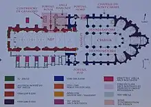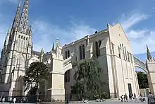 De plan quasi basilical, l'église se compose d'une nef de trois vaisseaux bordée de part et d'autre par des chapelles édifiées par les marchands, mariniers et artisans qui patronnèrent sa construction, tandis que le transept est non débordant. Le chevet se compose quant à lui de trois absides. Le clocher, isolé comme le sera celui de Saint-André, fut réalisé entre 1472 et 1492, mais posa déjà des problèmes de stabilité, tout comme le reste de l'édifice. De nombreuses restaurations et reconstructions furent entreprises dans les siècles suivants pour pallier ce problème toujours dû à la nature du sol. La flèche sera par ailleurs reconstruite en 1869 par Paul Abadie après avoir été endommagée par une tempête en 1768 qui avait entraîné sa démolition en 1822[5],[8].