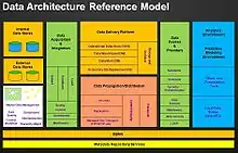 L'architecture métier décrit les applications informatiques, les principales bases de données du système informatique d'une institution ou d'une entreprise, les utilisations faites de ces éléments dans le cadre de l'activité de l'institution et leur alignement à l'organisation générale de l'institution. La vue métier fait ressortir les éléments historiques et en fin de vie, les interfaces avec des éléments appartenant à des tiers, ainsi que les possibilités d'ajouter des nouveaux éléments[3].