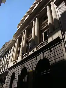 Façade arrière du bâtiment de l'Archivo General de la Nación de la Argentina, au 247, rue 25 de Mayo, conçu par l'ingénieur et architecte Arturo Prins.