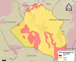 Le retrait-gonflement des sols argileux est susceptible d'engendrer des dommages importants aux bâtiments en cas d’alternance de périodes de sécheresse et de pluie. 99,5 % de la superficie communale est en aléa moyen ou fort (84,7 % au niveau départemental et 48,5 % au niveau national). Sur les 1 822 bâtiments dénombrés sur la commune en 2019, 1794 sont en aléa moyen ou fort, soit 98 %, à comparer aux 86 % au niveau départemental et 54 % au niveau national. Une cartographie de l'exposition du territoire national au retrait gonflement des sols argileux est disponible sur le site du BRGM[27],[28].