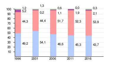 | Évolution des langues maternelles (en %) | Légende | |