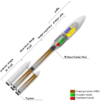 - premier étage à propergol solide (moins performant, abandon Vulcain, coût abaissé) ;
