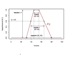 La figure 2 ci-contre illustre la notion de coupe-α pour un ensemble flou trapézoïdal.