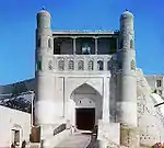 Selon des chroniques de l'empire timouride, au printemps 1405, après la mort de Tamerlan, à la veille des luttes pour conquérir le trône, Ulugh Beg et Ibrahim Sultan se sont rendus à Boukhara avec leurs coffres et leurs gardiens et se sont arrêtés à la citadelle d'Ark. Ils y ont travaillé pendant un mois pour renforcer les murs et les ports de la ville. Les chroniques mentionnent à l'époque l'existence de deux portes, l'une à l'est et l'autre à l'ouest[5],[6].