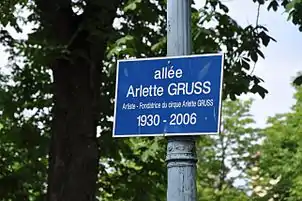 En 2007, une allée du Cours Léopold à Nancy a été nommé allée Arlette-Gruss en son honneur[1].