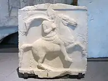 Une série de reliefs funéraires trouvés en Macédoine indiquent une évolution de l'armement des cavaliers à l'époque antigonide, avec l'adoption d'un grand bouclier rond.
