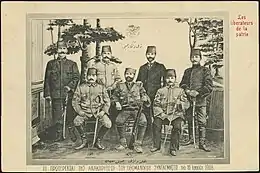 La « guerre de 93 » (1877 correspond à l'année 1293 dans le calendrier administratif ottoman) amène l'Empire au bord de sa perte[28]. L'armée ottomane subit une nouvelle série de défaites sur les deux fronts des Balkans et du Caucase. Elle résiste pendant 9 mois mais, le , le sultan doit se résoudre à signer l'armistice d'Edirne et accepter les exigences russes : une fois de plus, l'intervention des puissances occidentales sauve l'Empire ottoman en obligeant le tsar à arrêter ses troupes. Le Parlement ottoman, récemment créé par la Constitution de 1876, est convoqué le . Les députés commencent à critiquer le gouvernement et la conduite des opérations militaires : le sultan Abdülhamid II réplique par la dissolution de l'assemblée, mettant fin à la première période constitutionnelle ottomane et à une tentative sans précédent de contrôle civil sur les forces armées[29].