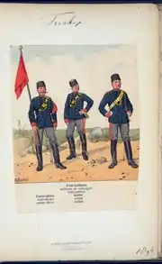 Uniformes et drapeaux de l'armée ottomane, Larousse illustré, 1902 | |
