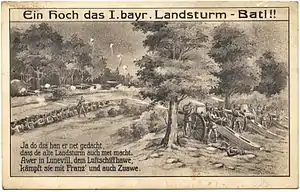Au début de la guerre, la plupart des unités bavaroises sont regroupées dans la 6e armée allemande sous le commandement du prince Rupprecht de Bavière, dépendant du commandement suprême de l'armée allemande. Les réserves restées en Bavière demeurent sous la tutelle du ministère de la Guerre bavarois. La 6e armée combat dans la bataille de Lorraine en 1914 et dans les autres combats du front de l'Ouest mais ses unités sont progressivement remplacées par des divisions non bavaroises tandis que des unités et généraux bavarois sont envoyés sur d'autres fronts : Léopold de Bavière commande un groupe d'armées sur le front de l'Est avant de succéder à Paul von Hindenburg comme commandant en chef de ce front le . Paul von Kneußl (de), chef de la 11e division d'infanterie bavaroise, s'illustre en 1915 par la reprise de Przemyśl, en Galicie austro-hongroise, prise par l'armée russe deux mois plus tôt. Friedrich Kress von Kressenstein commande les forces germano-ottomanes pendant la campagne du Sinaï et de la Palestine. Le caporal Adolf Hitler, bien que sujet austro-hongrois, fait la guerre comme volontaire dans le 16e régiment d'infanterie bavarois.