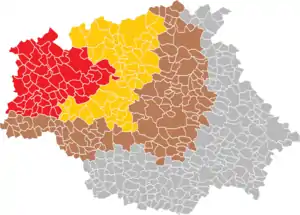 Celle de l'armagnac-ténarèze couvre d'une part dans le Gers l'intégralité des cantons de Montréal, de Valence-sur-Baïse, de Condom et de Vic-Fezensac, ainsi qu'une partie du canton d'Aignan (Aignan, Bouzon-Gellenave, Castelnavet, Loussous-Débat, Lupiac, Pouydraguin, Sabazan et Saint-Pierre-d'Aubézies), d'autre part en Lot-et-Garonne tout le canton de Mézin, ainsi que des parties des cantons de Nérac (Andiran, Fréchou et Nérac) et de Francescas (Fieux, Francescas, Lasserre et Moncrabeau)[30].