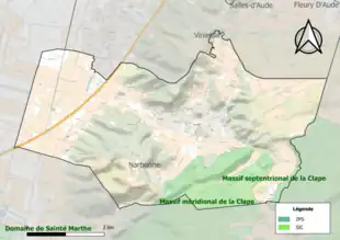 La commune fait partie du parc naturel régional de la Narbonnaise en Méditerranée, créé en 2003 et d'une superficie de 68 350 ha, qui s'étend sur 21 communes du département[12]. Composé de la majeure partie des milieux lagunaires du littoral audois et de ses massifs environnants, ce territoire représente en France l’un des rares et derniers grands sites naturels préservés, de cette ampleur et de cette diversité en bordure de Méditerranée (Golfe du Lion)[13].