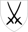 Blason de l'électorat de Saxe avec les épées croisées de l'archimaréchal du Saint-Empire romain germanique et le crancelin vert (1356-1806). |