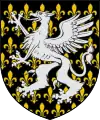 De sable semé de fleur de lys d'or, chargé d'un griffon d'argent. |