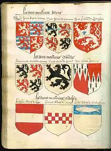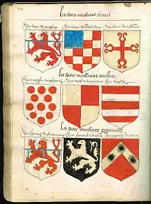 - III (fol. 52v – 57v, 36r – 48v, 9r – 13r): 404 blasons de participants à un raid contre les Frisons à Kuinre; 1396