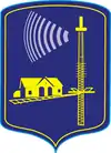 Kolodichi D'azur, à dextre la gare du lieu d'or, à sénestre une antenne émettrice de même, aux ondes d'acier. |