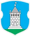 Mikachevitchi De gueules, à un mur de gueules crénelé en pointe, un bourgeon d'argent en chef et une flèche en pointe. |