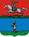 | Belaaziorsk D'azur au croissant d'argent surmonté d'un arc chargé de trois flèches, celles de dextre et sénestre stylisées en éclairs, le tout d'argent. | |