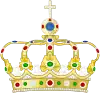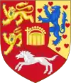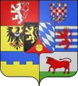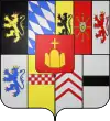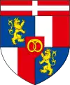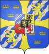 écartelé en 1 et 4 de sable, au lion d'or, armé, lampassé et couronné de gueules et en 2 et 3 fuselé en bande d'azur et d'argent, sur le tout de gueules à la couronne de Charlemagne d'or