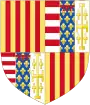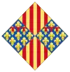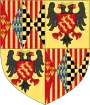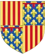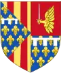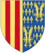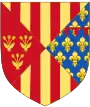 Écartelé en 1 et 4, d'or à quatre pals de gueules et en 2 et 3 semé de fleurs de lys d'or; un lambel de gueules, brochant sur la partition[19]. | ||