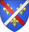 Mi-parti d'azur à trois fleurs de lys d'or à la bande de gueules et d'azur à trois fleurs de lys d'or. |