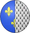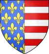 Mi-parti d'azur à trois fleurs de lys d'or à la bande de gueules et d'azur à trois fleurs de lys d'or