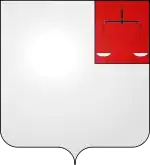 D'azur au chevron d'or surmonté d'un comble cousu de gueules chargé de 2 étoiles d'argent, alias d'or, au franc-quartier des barons-évêques.[11] |