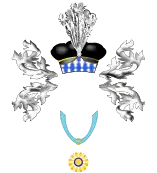 Losangé d’argent et d’azur ; au canton des barons préfets de l'Empire brochant.[27] |