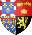 ![]() Armes, selon Rietstap. Écartelé : aux 1 et 4 d'azur, à un faisceau des licteurs d'or, lié d'argent, la hache du même, à la fasce de gueules, brochant sur le tout et chargé de trois étoiles d'or (de Mazarin (it)) ; aux 2 et 3 d'azur, à deux poissons d'argent (adossés selon le père Anselme[10]) en pal (de Mancini).[11],[12],[10],[13]