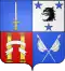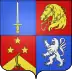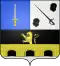D’azur au casque taré de front et grillé d’or, panaché de 6 plumes d’autruche de sable, accosté à dextre d’une épée haute d’argent, à senestre d’un bouclier incliné d’argent chargé d’une tête de lion au naturel, senestré d’une lance en pal de sable surmonté de 2 tourterelles affrontées au naturel ; au chef tiercé en pal : 1) d’azur à l’épée haute d’argent, montée d’or ; 2) de gueules au sautoir d’argent, cantonné de 3 étoiles d’argent et d’un croissant du même ; 3) d’or accosté à dextre de 3 foudres de gueules, à senestre d’une muraille de sable.[3],[4],[2] |