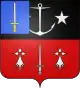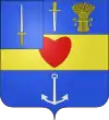 D'azur, à la fasce d'or, chargée d'un cœur de gueules, et accompagnée en chef d'une épée d'argent la pointe en bas, accostée de deux gerbes d'or, liées du même, et en pointe d'une ancre d'argent[3] ; au canton des comtes militaires brochant.[2] |