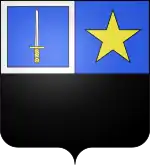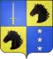 Coupé : au 1, parti du quartier des comtes militaires et d'or, à la fasce d'azur, chargée de trois étoiles du champ et accompagnée en chef et en pointe d'une molette de sable ; au 2, de sinople, au chevron d'or, accompagné en pointe d'un lion léopardé du même.[3],[2] |