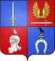 Écartelé : au premier des comtes tirés de l'armée ; au deuxième de gueules à l'épée d'argent en fasce la pointe à dextre, surmontée d'un vol ouvert d'or ; au troisième de gueules au casque taré de profil d'argent sommé d'un corbeau tenant au bec un anneau du même ; au quatrième d'azur au fer de cheval d'argent, clouté du champ, sommé d'une croix pattée d'or sur laquelle est perché un corbeau tenant au bec un anneau de sable. |