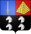 Coupé: au 1, parti du quartier des comtes militaires de l'Empire et de gueules, à une pyramide d'or, maçonnée de sable; au 2, de sable, à quatre têtes de cheval d'argent, 2 et 2.[3],[8] |
