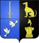 Écartelé : au 1, du quartier des comtes militaires ; au 2, de sable, à un lévrier assis et contourné d'or ; au 3, d'azur, à deux tourterelles d'argent ; au 4, de sable, à une cuirasse antique, surmontée d'un casque d'or.[3],[2],[6],[5] |
