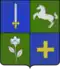 D'argent, à un cheval contourné de sable enjambant une lance de gueules, posée en barre, la pointe à sénestre à la barre alesée d'azur mouvant de l'angle dextre du chef, chargée de trois têtes de lion d'or ; au canton des comtes militaires brochant.[2] |