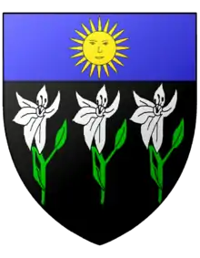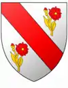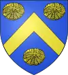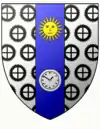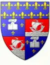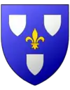 Parti au premier d'azur à une fleur de lis d'argent accompagnée de trois écussons de même, deux en chef et un en pointe; au deuxième d'argent à trois carreaux de gueules posés deux en chef et un en pointe. |