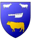 D'azur, à deux moutons affrontés d'argent, en chef, un couperet de même posé en fasce et un bœuf passant d'or, en pointe | |