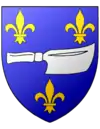 d'azur, à un couperet d'argent accompagné de trois fleurs de lis d'or, |